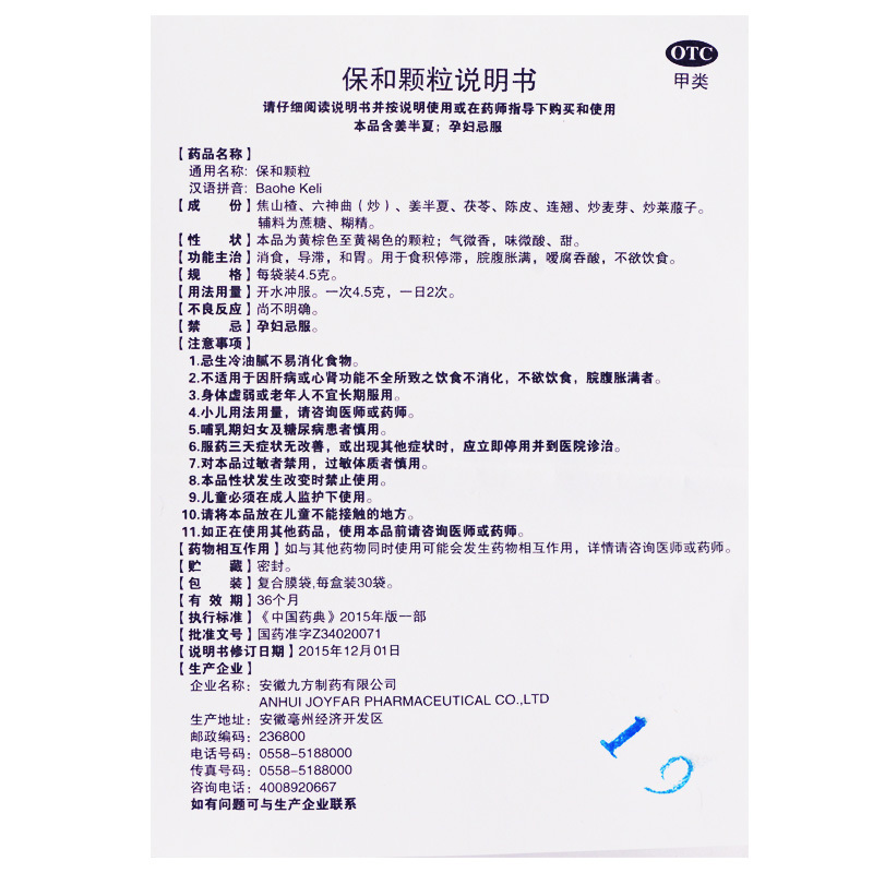 通用名:保和颗粒(医保)